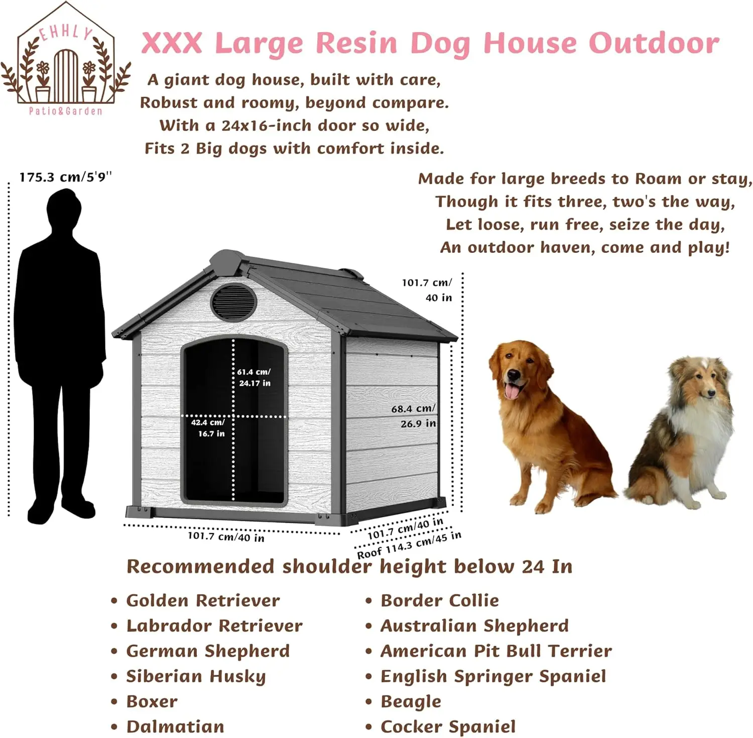 - Built for Durability: Made with heavy-duty resin plastic and crafted through the advanced extrusion molding process, this outdoor dog house weatherproof structure features 16 mm thick walls for superior strength and long-lasting reliability in all seasons.