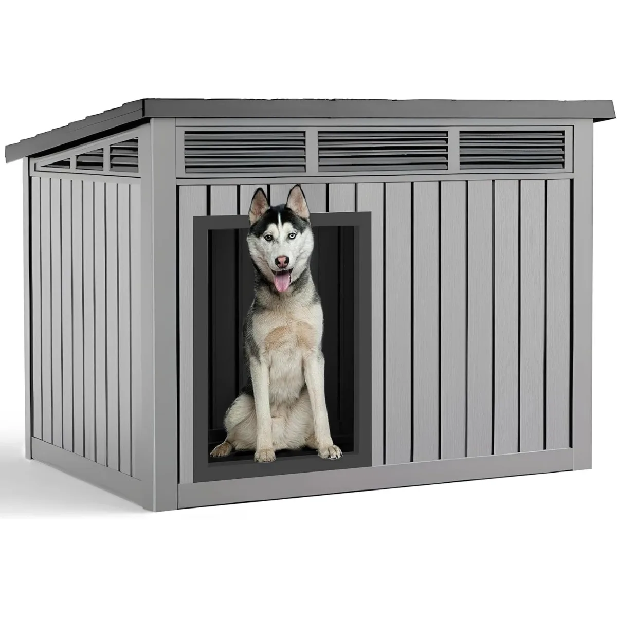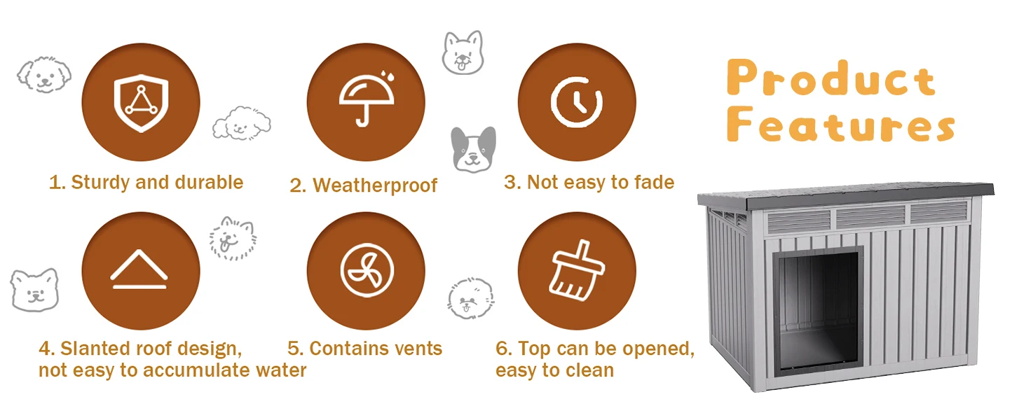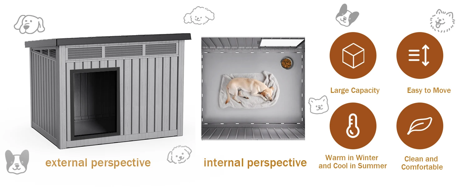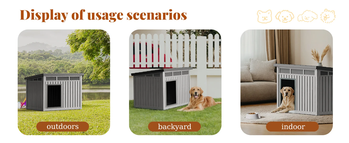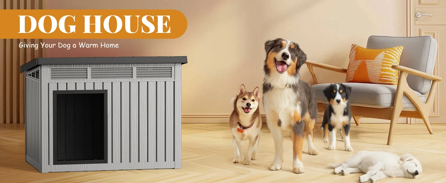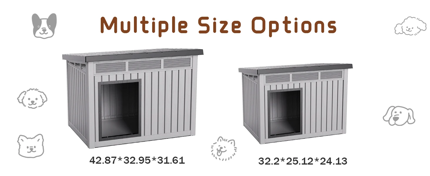 Waterproof Dog House for Small/Medium Dogs, Indoor/Outdoor with Air Vents & Elevated Floor, Easy to Clean & Assemble, Gray