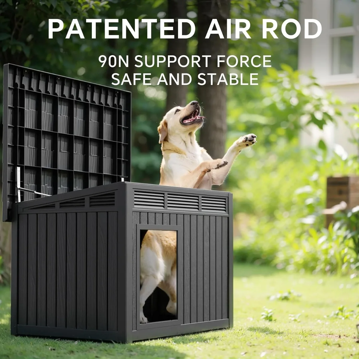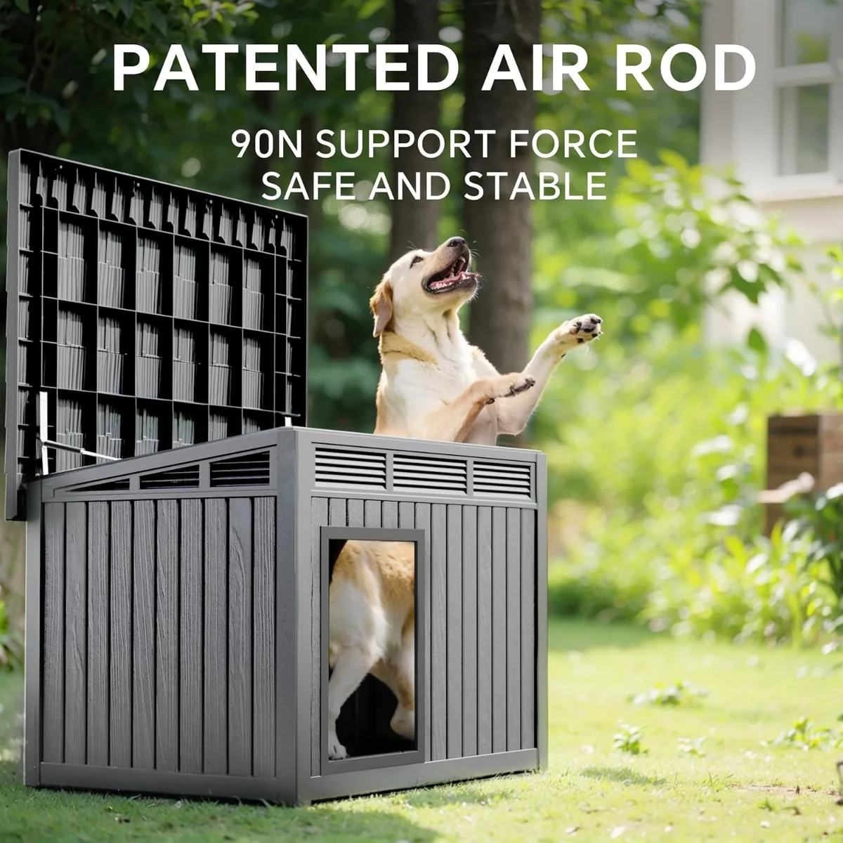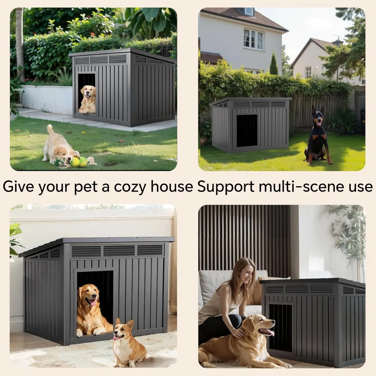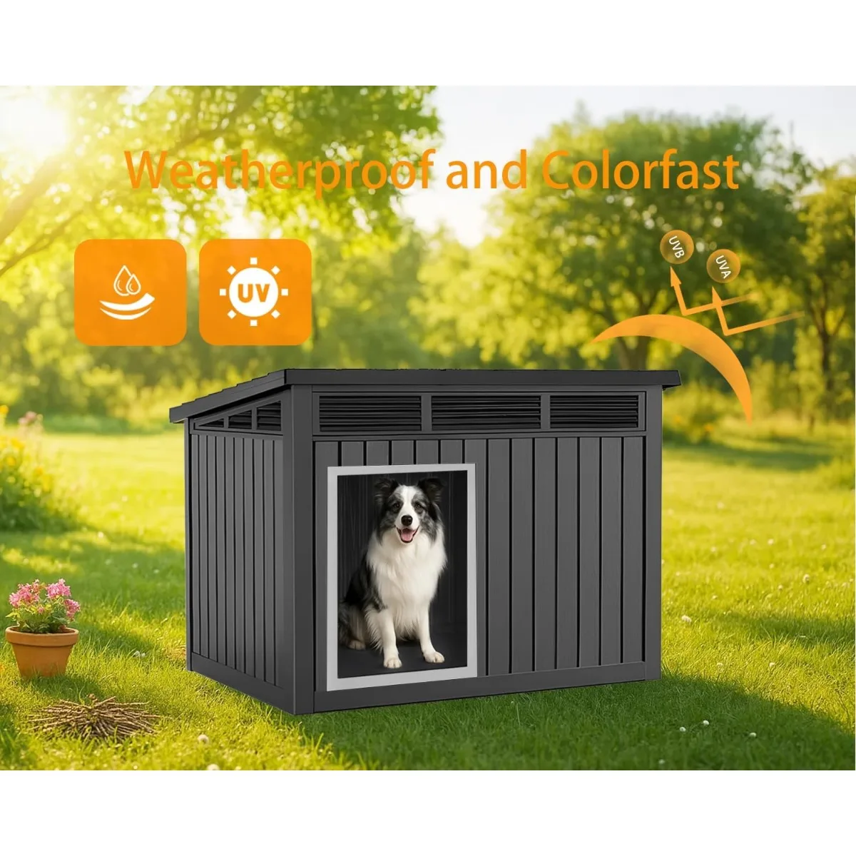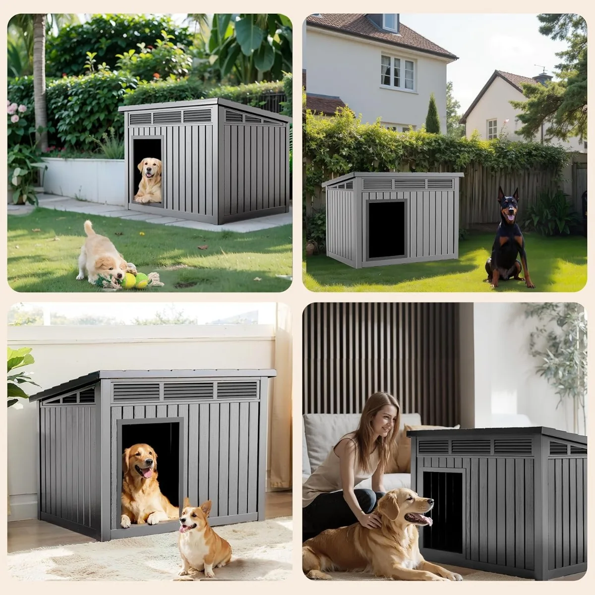 Waterproof Dog House for Small/Medium Dogs, Indoor/Outdoor with Air Vents & Elevated Floor, Easy to Clean & Assemble, Gray